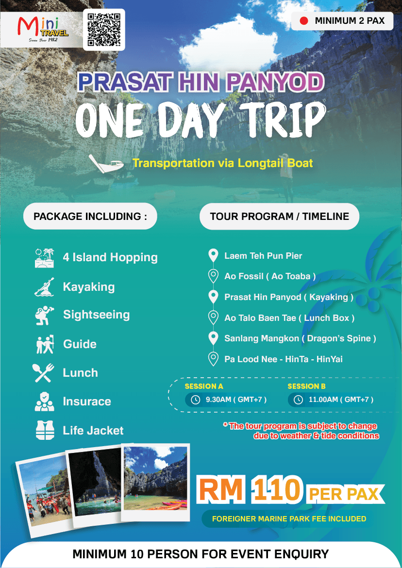 Prasat Hin Panyod in Satun combines history and adventure. Explore the ancient Khmer temple, then enjoy kayaking along the beautiful sea beach and island hopping, offering a perfect mix of culture and coastal fun.